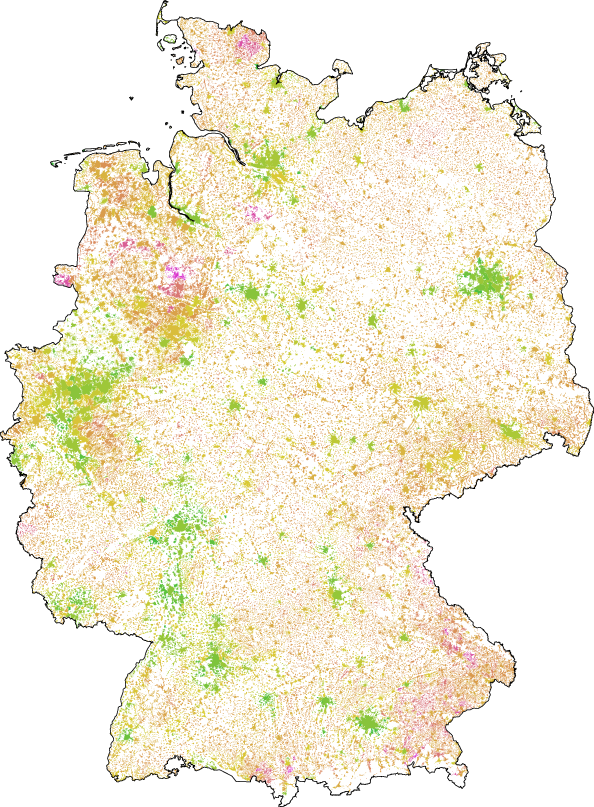Diese Berechnung habe ich für alle Gemeinden in Deutschland durchgeführt. (Genauer: Für alle Gemeindeverbände, sofern diese vorhanden sind, und in Berlin und Hamburg für die Bezirke.) Auf dieser Seite finden Sie einige Grafiken und Tabellen dazu.