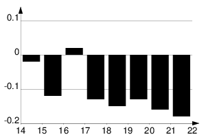 | Jahr | 6 km/h-Straßen | Veränderung zum Vorjahr |