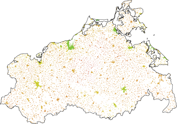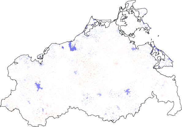 Wie hat sich der Speed-Index in Mecklenburg-Vorpommern im Verlauf des letzten Jahres geändert? In blauen Bereichen in der folgenden Karte hat er sich verbessert, in den roten Bereichen verschlechtert.
