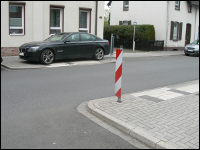 Ein dreister Falschparker versperrt den Gehweg komplett.